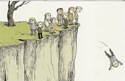 Alle kinderen staan stil bij de afgrond.
