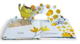 En zo is er op elke pagina een mooie pop-up die een emotiekleur weergeeft zoals het knalrode boos, de zwarte angst en als laatste de groene rust waarbij je het kleurenmonster heerlijk in een groene hangmat tussen groene bomen ziet liggen. Bij elke emotie staat in een paar korte zinnen de beschrijving daarvan en wat je doet als je dat voelt.