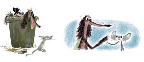 De afbeeldingen van Marc Boutavant maken het verhaal extra leuk. Als je de grappige snoet van Stinkhond ziet, krijg je vanzelf een lachkriebeltje in je buik. Hij is zo lekker vrolijk! Stiekem zou je zelf wel zo'n lieve Stinkhond willen, met Plattekat erbij!