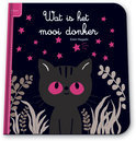 De mooie afbeeldingen staan verspreid over twee pagina's. Op elke afbeelding staat links steeds de zin 'wat is het mooi in het donker...' en rechts staat een zin waardoor je weet waar je op moet letten. Zoals één maan, twee ogen, drie ramen enz. Die ramen, ogen etc. zijn in het felroze weergegeven. Een kind leert hierdoor ook te tellen. En steeds is daar ook de zachte fluwelige poes bij afgebeeld, die je eventjes kunt aaien.