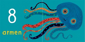 Het is dan ook heel prettig dat er weer een nieuw boek van haar uit is en wel dit telboek, Van 1 tot 10. Het boekje heeft afgeronde hoeken en hardkartonnen pagina's die makkelijk met een doekje afneembaar zijn. Dus plakkerige wijsvingertjes kunnen geen kwaad.