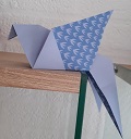 Op naar moeilijkheidsgraad drie en dan wordt het helemáál lastig om te kiezen want hoe moeilijker het vouwwerk is hoe leuker de figuurtjes worden... Zal ik die leuke eekhoorn, de mooie zwaluw, de haas met zijn grote oren, die vrolijke eend of die gele slak maken? Het wordt uiteindelijk toch de zwaluw, en daarvoor kies ik het het bijgevoegde papier dat bedrukt is met... kleine zwaluwtjes! En ook deze figuur lukt redelijk snel. Als je eenmaal goed door hebt wat de verschillende aangegeven lijnen en symbooltjes betekenen dan gaat het vrij vlot.